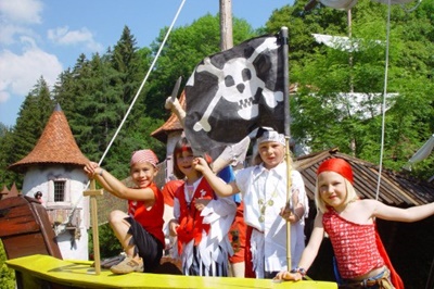 The Fairytale Forest enchants both the old and the young. This can be a programme full of joy for families, grandparents and grandchildren. Here we can meet again the Grimm-brothers, Punchinello and fantastic adventures are waiting for us around the greatest slide of Upper Styria. We can become sailors on a viking ship or chieftains in an Indian village and the bravest can also enter the maze. And there are also beautiful dolls to play with. The smallest children can play in the nimble room or on the baby see-saw. There are little rabbits, donkeys and small goats around. Here we can find everything that makes children happy.